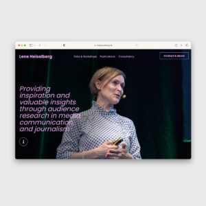 Lene Heiselberg er en dygtig foredragsholder, underviser, konsulent og forsker, som ønskede at dele sin viden med verden. Derfor søgte hun en samarbejdspartner, som kunne skabe en levende og inspirerende hjemmeside, hvor Lene kunne samle sine artikler samt information om foredrag, workshops og konsulentydelser. Hjemmesiden skulle være simpel og brugervenlig for både Lene selv og hendes diverse målgruppe, som blandt andet inkluderer store nationale og internationale medievirksomheder, studerende og nichede eksperter, der deler Lenes passion for medielandskabet og de personer, der bevæger sig i det.